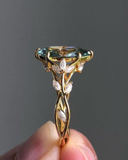 2 CT Art Deco Style Floral Leaf Moissanite Ring Blue Green Marquise Cut Engagement Ring